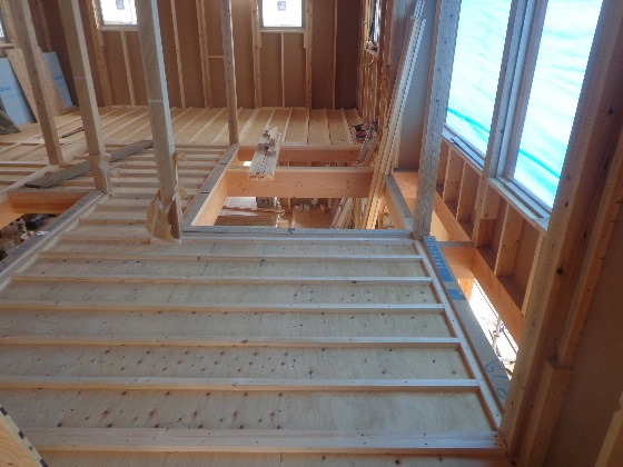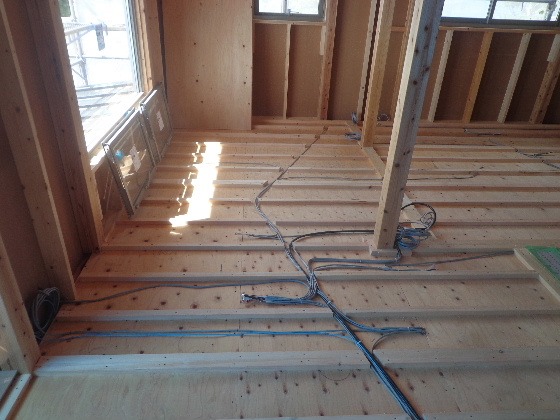 二階の床には配線スペースが出来ています。