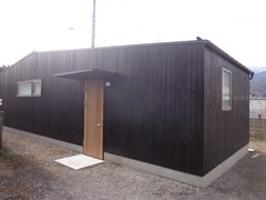 倉庫棟は全面黒い板壁のモダンな雰囲気 |
