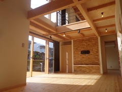 大きな窓(木製製作建具)と大きな吹抜を配し、